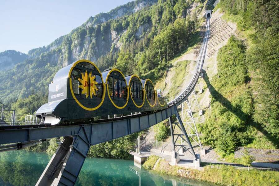 連結瑞士中部城市施維茨(Schwyz)與施圖斯(Stoos)的高山纜車Stoos Bahn Tram(施圖斯纜車),軌道全長僅1720公尺,短短不到2公里的距離,高度差卻有743公尺,爬升角度高達47.7度,傾斜程度可說是直比雲霄飛車,硬是比下前一條、位在瑞士伯恩的最陡鐵路纜車Gelmerbahn。而新落成的Stoos Bahn Tram也是鐵路工程的一大壯舉,更被譽為當代運輸工程的勝利。