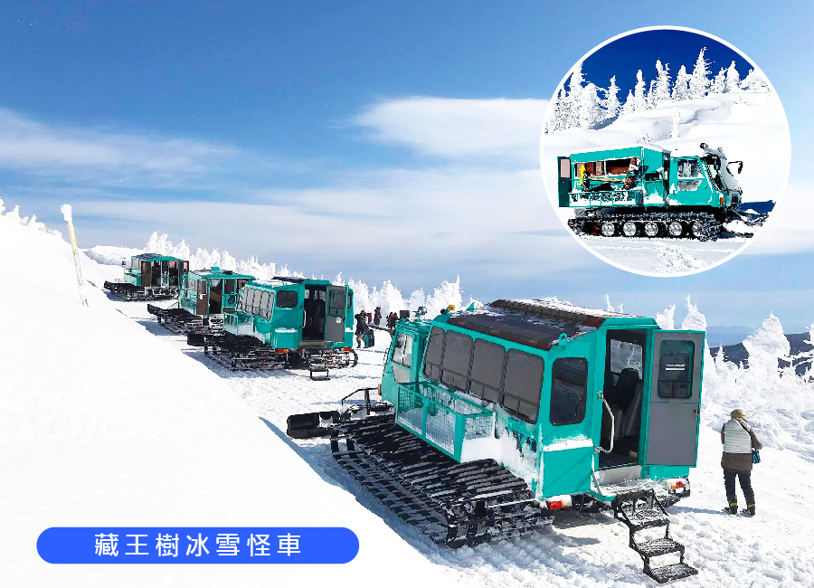【藏王雪怪車】橫跨宮城縣與山形縣的蔵王連峰,是個可以觀賞珍貴自然美景「樹氷」的地方之一。 宮城蔵王SUMIKAWA雪之樂園,乘坐開有暖氣的雪上車「Wild Monster號」,一同近距離的觀賞樹氷的「宮城蔵王的樹氷之旅」,受到許多人的青睞。